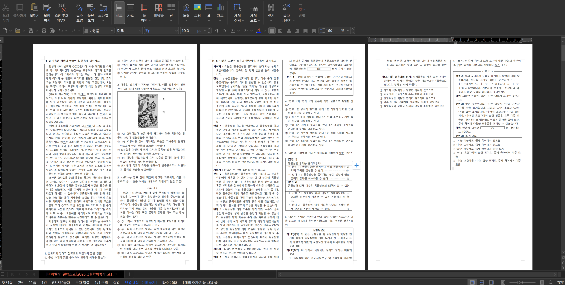 •2단 레이아웃, 지문 문단테두리, 보기 표, 미주 자동화 등 국어 시험지 특유의 편집 요소가 어떻게 처리되는지 확인할 수 있습니다.