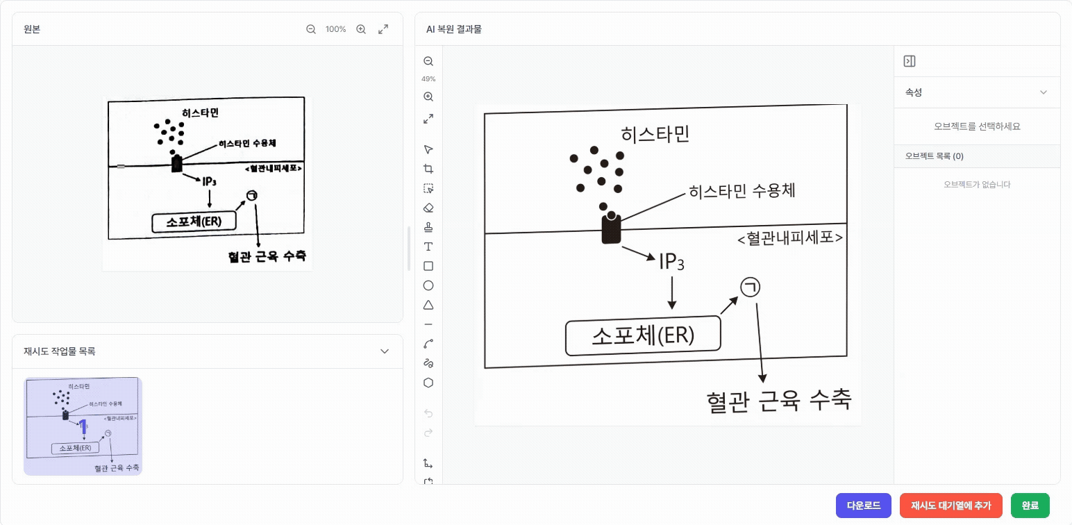 - **UI 개선**: 작업 화면을 넓게 활용할 수 있도록 '속성 및 오브젝트 패널' 접기 기능을 구현했습니다.
